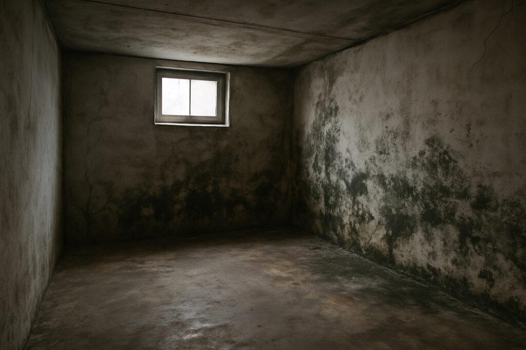 - Difuzija vlage iz tal in sten: Starejše ali neizolirane kleti nimajo dobre zaščite pred vlago. Zato ta iz tal in sten počasi prehaja v prostor.